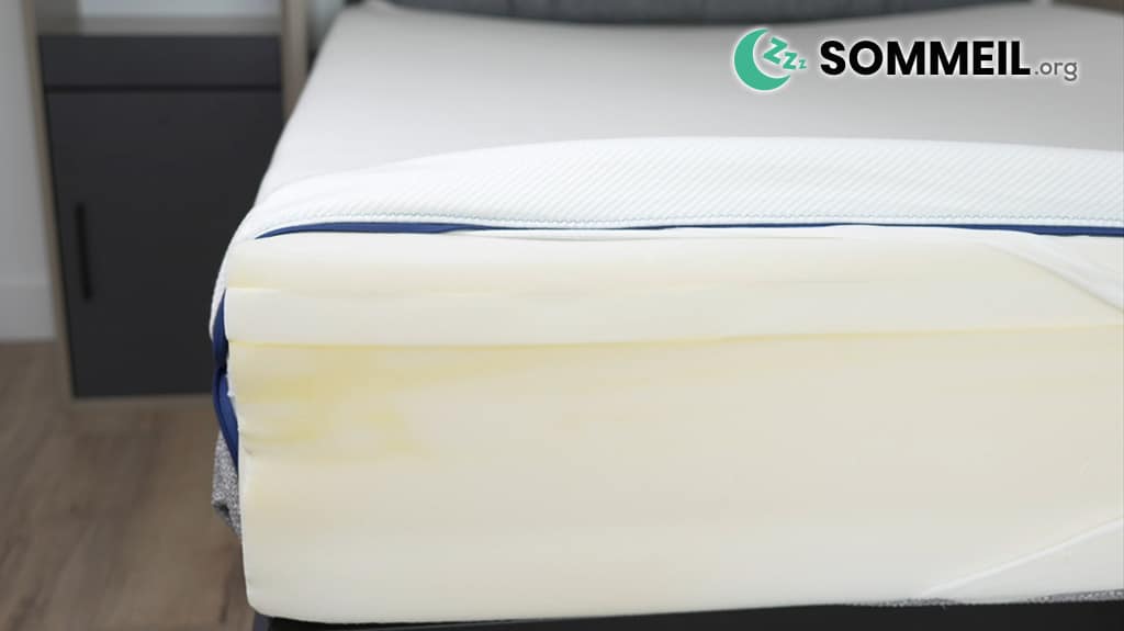 La mousse à mémoire de forme offre de nombreux avantages en matière de confort et c’est d’ailleurs pourquoi ces modèles sont les plus vendus et les plus appréciés par les consommateurs. Cette couche de 3,5 centimètres est moyennement dense, et ne sera donc ni trop molle ni trop ferme. En d’autres termes, elle est parfaitement équilibrée.